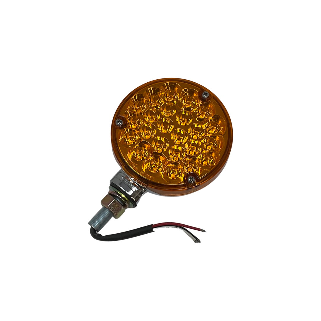 Amber LED turn signal or marker light for trailers, buggies, off road vehicles, and custom applications. Measures 4 inch diameter. Includes 3 wires for ground, power, and activate bright.