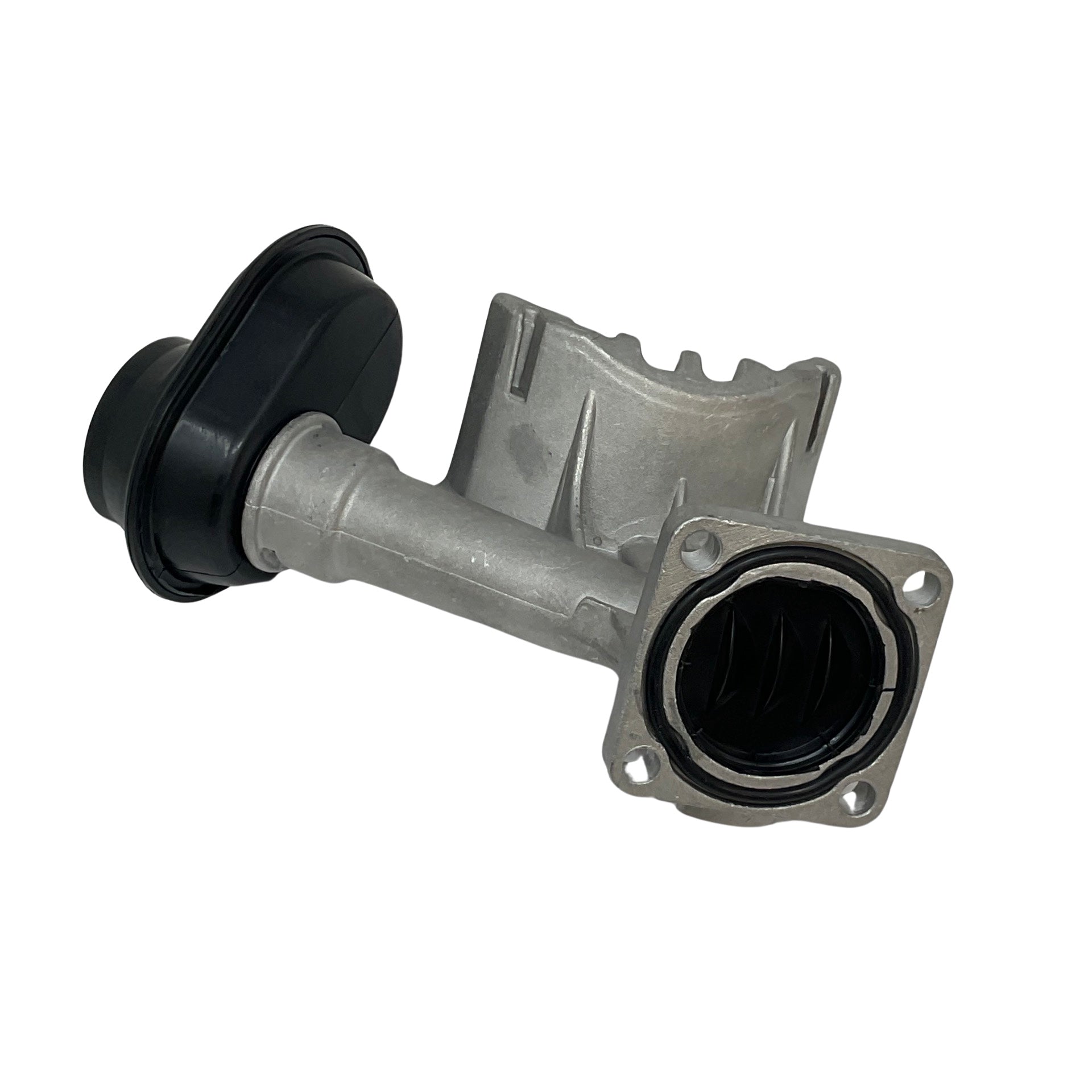Mexican style alternator stand with O-ring bottom seal, integrated plastic deflector plate, and plastic oil filler neck that snaps into place. This Mexico style alternator stand fits all 105mm diameter generator and Type 1 alternators. Uses special Mexican style alternator strap, or can be modified to fit standard German clamp/strap. Alternate part numbers 043101210B, 043-101-210B.