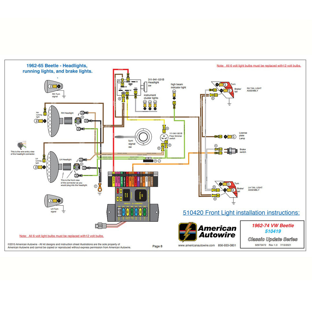 American Autowire Classic Update kits are designed for projects that require more circuits than would have been available in an original chassis harness. Each kit is designed to include all the basics needed to rewire a vehicle from headlight to tail light, and in the case of our Volkswagen Beetle kit, is designed only for vehicles using a 12 volt electrical system.
