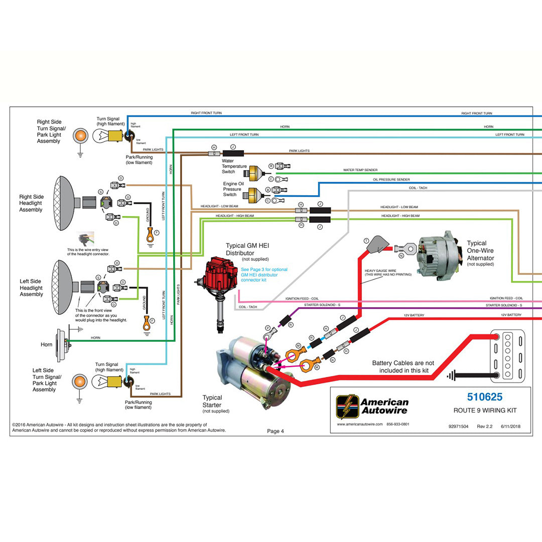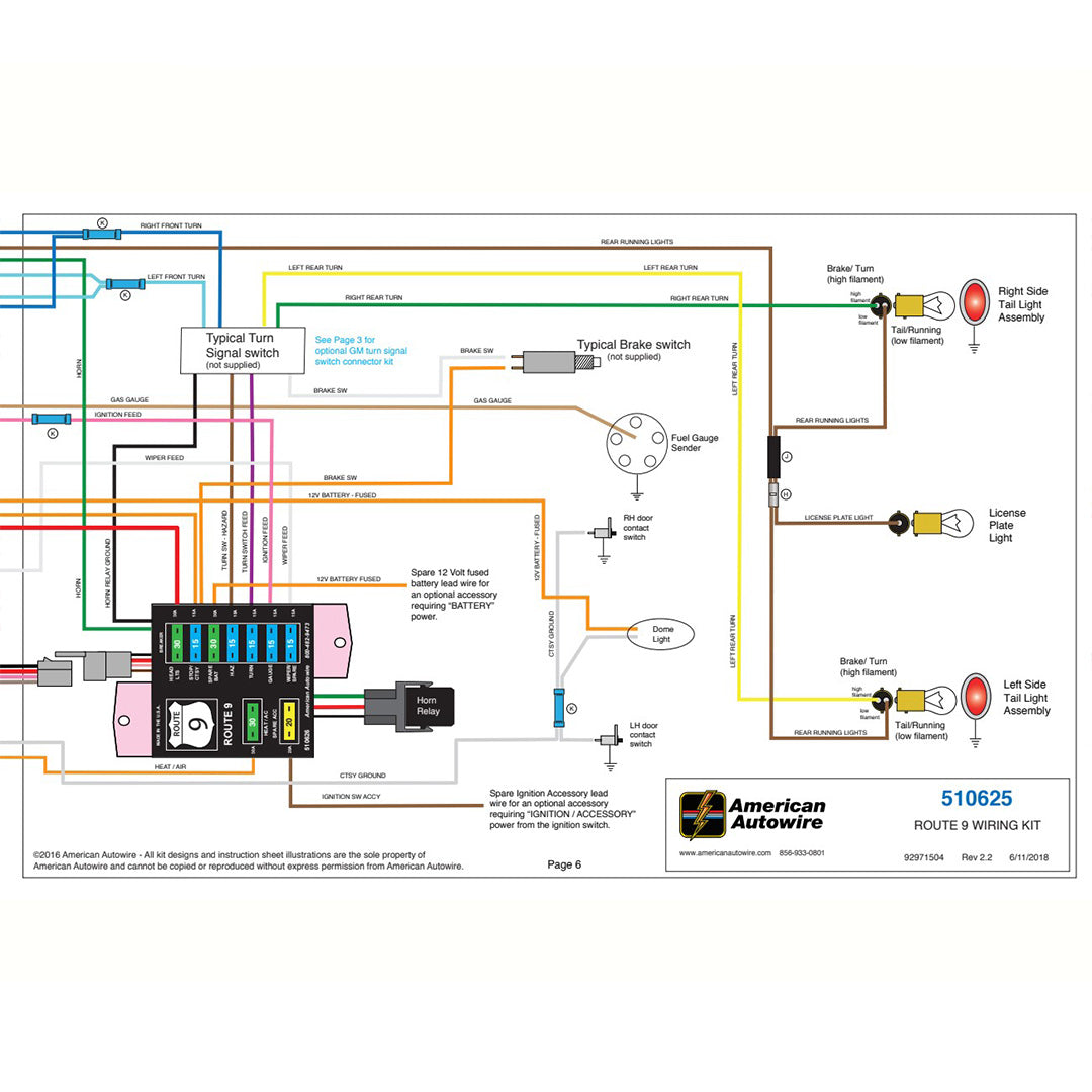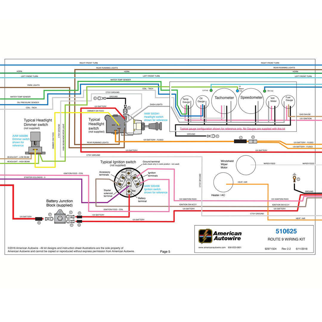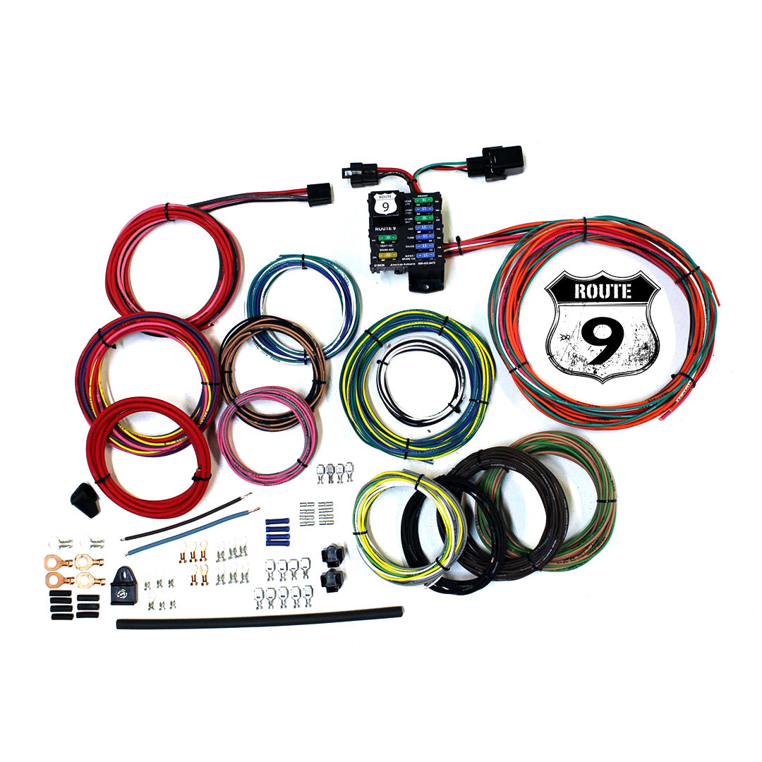 American Autowire Route 9 Universal Wiring System is an entry-level wiring harness kit that provides a complete vehicle electrical solution in a compact, “bulletproof” package. This is the perfect wiring solution for hot rods, rat rods, or any vehicle requiring a basic, full-function electrical system. Complete, full-color instructions are included with each kit to “Make Wiring THAT Easy”. Important features of the kit include: