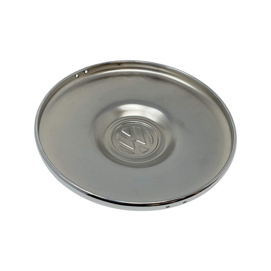 Chrome hubcap for 4 lug VW beetles with logo. These are a nice daily driver quality hubcap and fit 1968-79 4 lug Beetles. They have a 19mm inner lip that will NOT fit Bus wheels. Alternate part numbers 311601151D.
