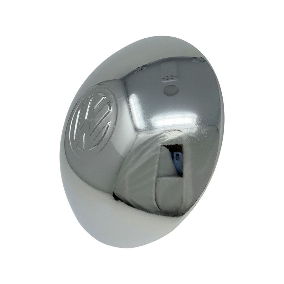Chrome baby moon style hubcap with logo. These fit early 5-lug 5x205mm pattern VW wheels used on 1946-65 Beetle, 1956-65 Ghia, 1955-70 Bus, and 1973-74 Thing. Alternate part number 113601151.