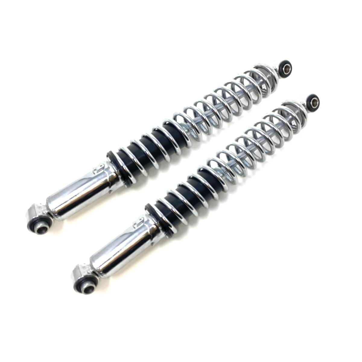 Chrome shock absorber with assist spring. Fits Link Pin or King Pin VW style front beams, and both Swing Axle and IRS rear ends. May need bushing insert trimmed for some applications. Alternate part numbers 17-2815-8, 113513031G.