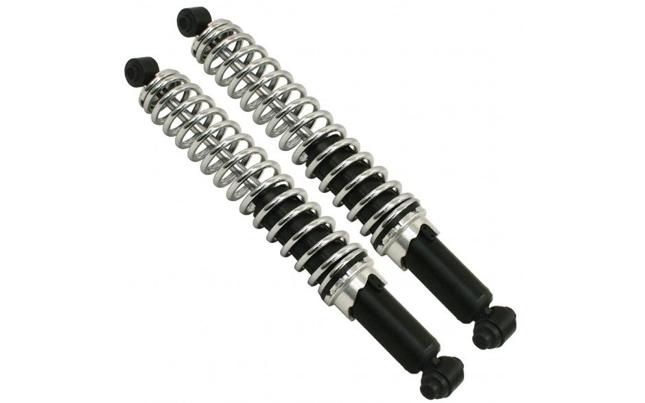 Coil over shocks for King Pin front and IRS or Swing Axle rear ends for VW Type 1 vehicles, dune buggy, sand rail and rail buggy. These coil overs typically raise the vehicle one inch at their lowest setting and are used as helper springs in conjunction with your stock torsion bars.