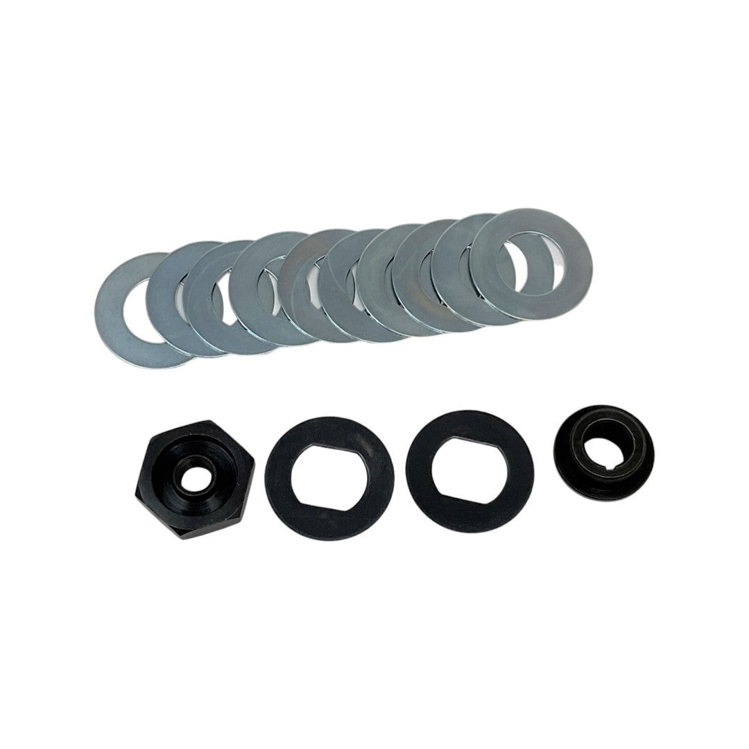 DB1 fan hub hardware kit for 1954-79 air cooled VW Beetle, Ghia, Type 3, and early Bus with upright Type 1 engine. This fan hardware kit mounts the cooling fan onto the alternator/generator. Includes fan mounting hub, washers, fan hub nut, and 10 pack of pulley shims which are also used to space the fan from the fan shroud. Alternate part numbers 00-8898-0, 111198123A.