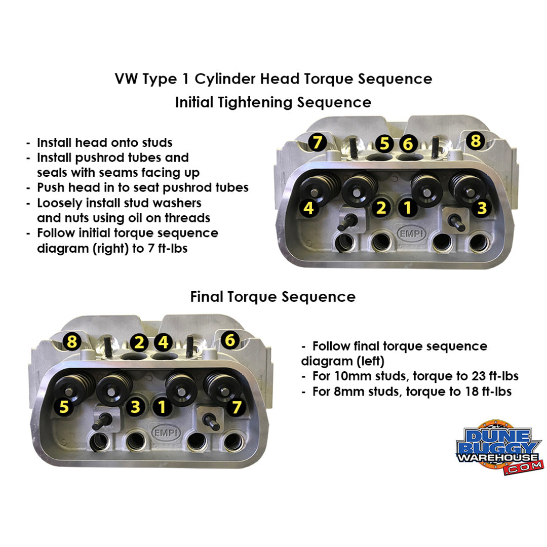 These Empi 98-1335-B GTV2 performance cylinder heads feature 40mm x 35.5mm stainless valves, 20 percent larger intake and exhaust ports, and plenty of additional material for custom porting. Cylinder heads are machined for 12mm 3/4 inch reach spark plugs.
