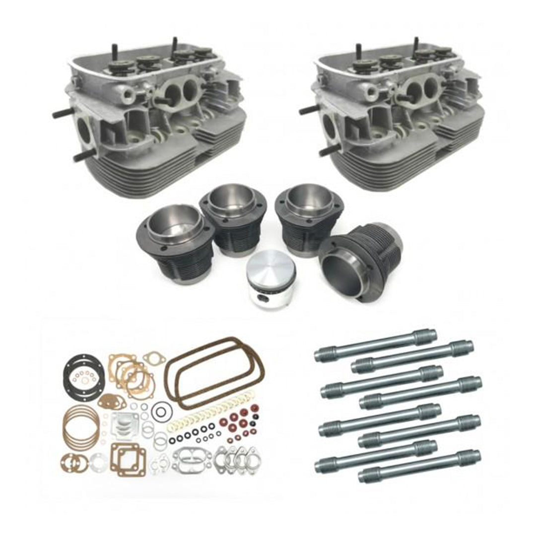 DBW Driverpak 94mm 1914cc top end rebuild kit for 1966-79 VW Beetle, Karmann Ghia, Type 3, Thing, and Bus with Type 1 engines. Includes 94mm pistons & cylinders, high performance big valve cylinder heads cut for 94mm pistons with 40mm x 35mm valves and 56cc combustion chambers, Elring gasket kit, and stock steel pushrod tubes.