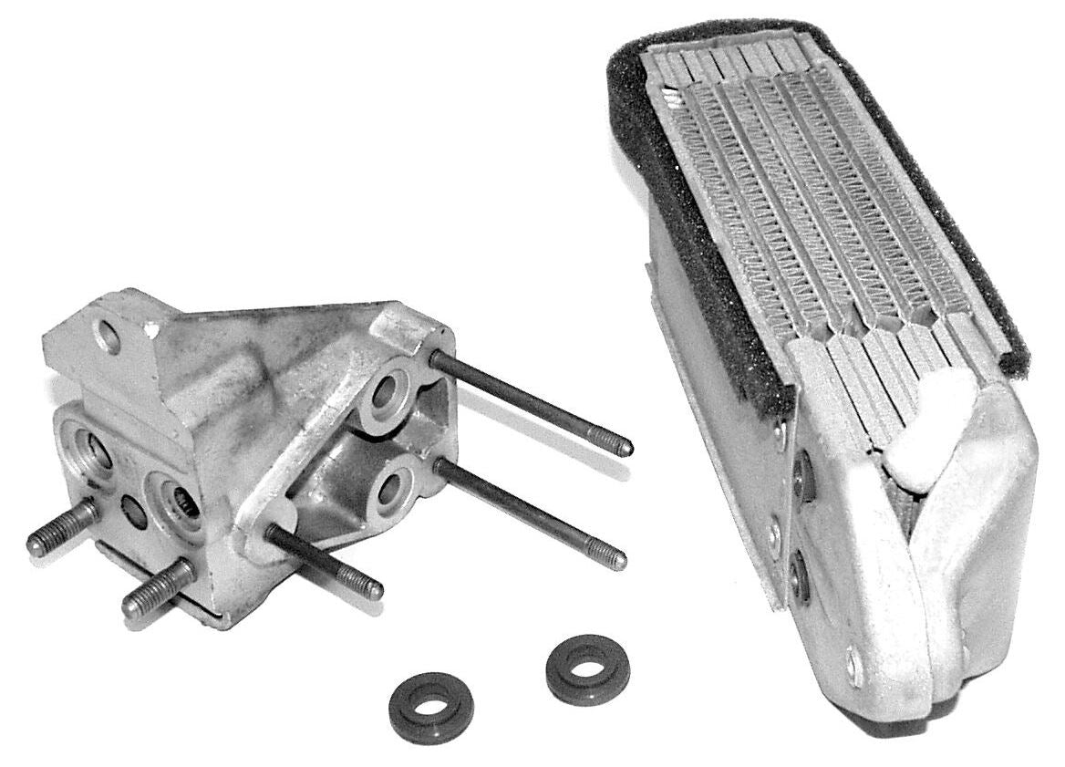 Upright doghouse style oil cooler kit. Fits 1971-79 VW Beetle, Karmann Ghia, Type 3, Thing, and Bus with Type 1 engines with doghouse style fan shrouds. Includes part numbers 113117021, 00-8894-0, 00-9256-0. Alternate part numbers 98-1161-B, 113117303, 021117151A.