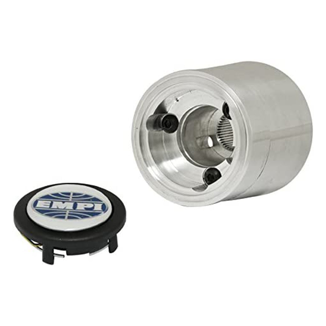 Empi 15 inch diameter 3 inch dish 23mm wood grip steering wheel with polished chrome spokes. Real wood grain finish with finger grips on underside. 380mm diameter with 23mm grip. Mounts with 3 bolt pattern and includes aluminum adapter mount.