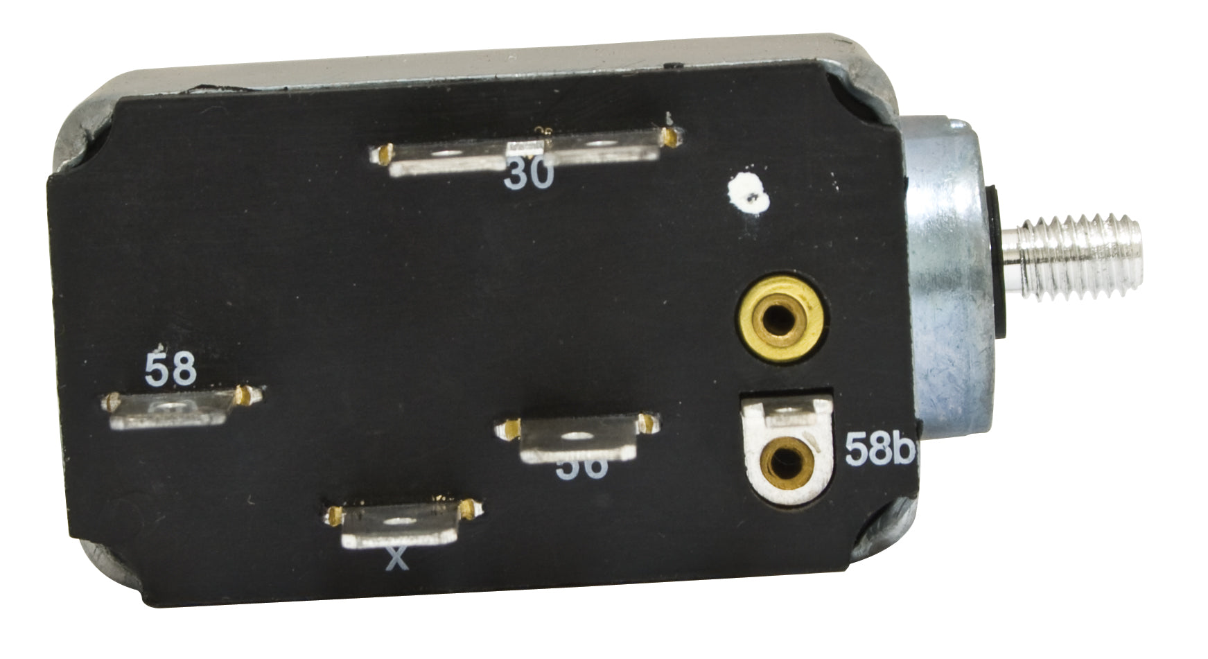 Headlight switch 6 prong with dimmable dash lights. This replacement switch fits 1965-70 Beetle, 1971-79 Bus, 1963-67 Type 3 and 1973-74 Thing. Alternate compatible part numbers 311941531B, 311-941-531B, 98-9980-B, 989980B, 211941531E, 211-941-531E.