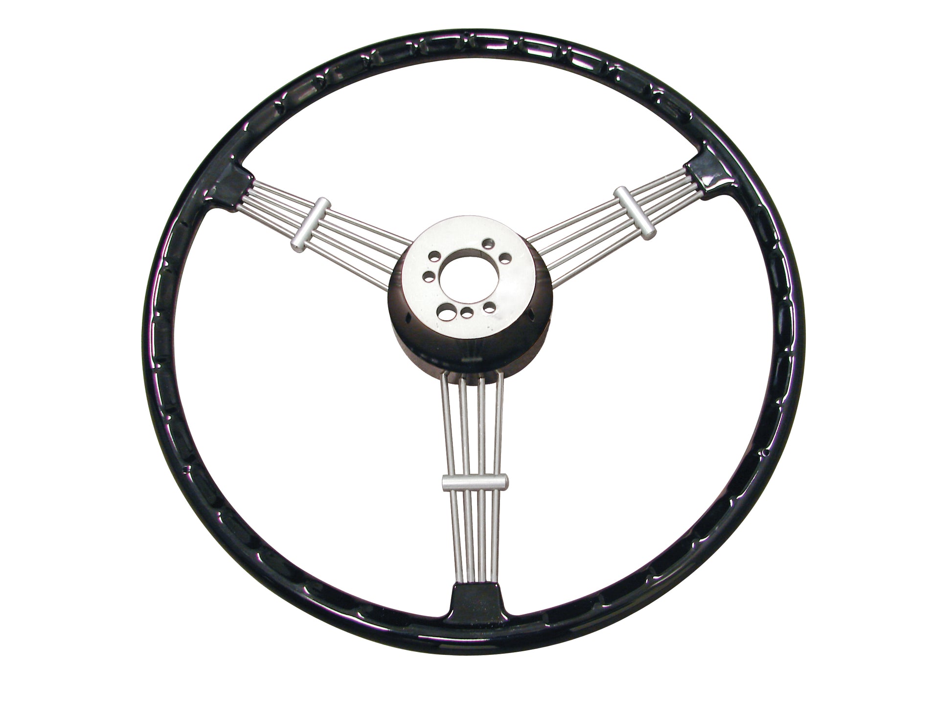 Vintage style 3 spoke 15-1/2in diameter Banjo steering wheel, available in Black or Silver / Grey. Finger grips are on the under-side. Supplied with horn button. Must purchase a boss kit to complete installation (P/N 79-4062 fits 49-59 Bug and Ghia, or 79-4063 fits 60-74 Bug or Ghia).