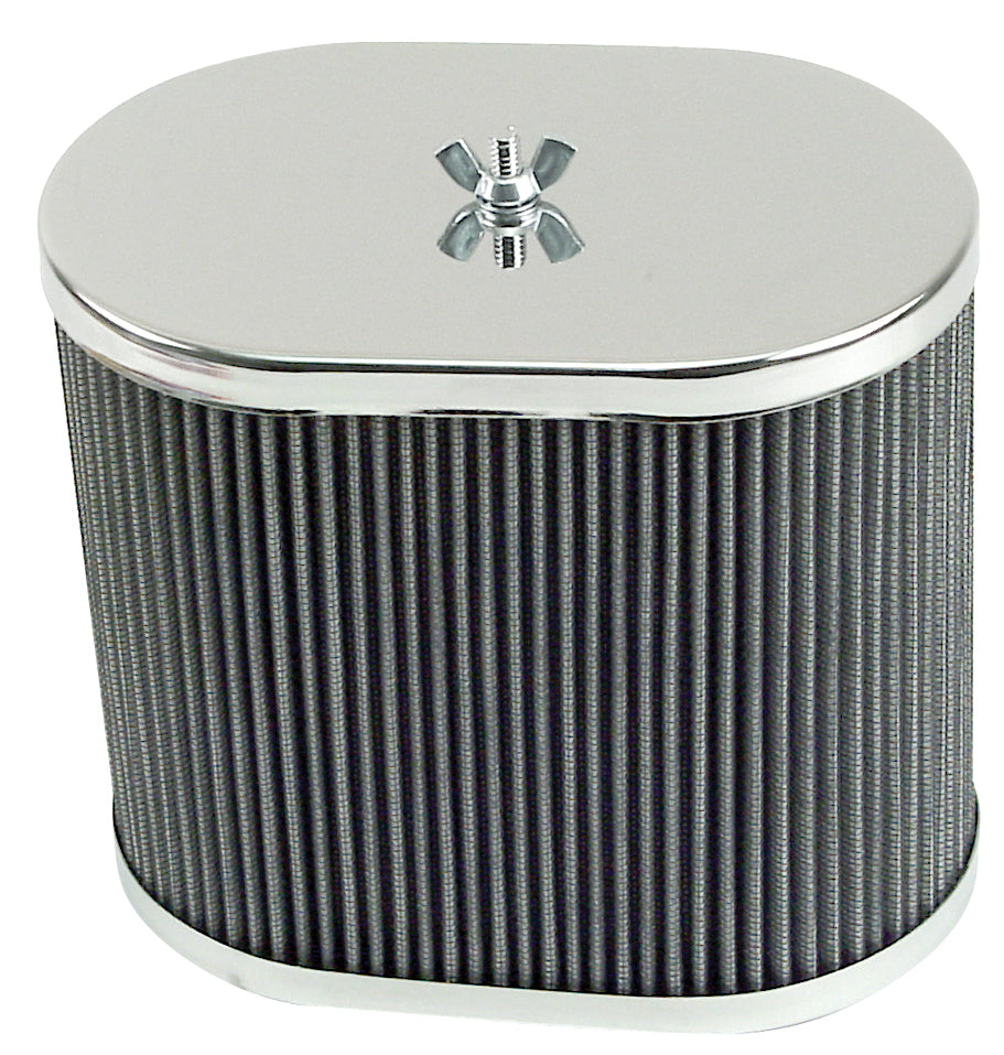 These Empi air cleaner assemblies feature the finest components in the industry. They have heavy duty chrome tops and bottoms and come with high flow washable gauze filter elements. Features high tension springs for extra rigidity and twist resistance. For use on EMPI HPMX, WEBER IDF and EMPI D Series.