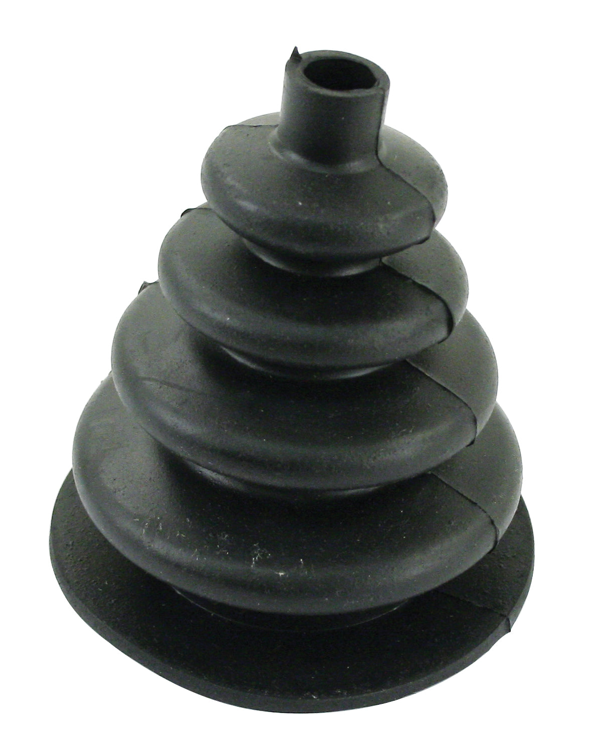 Empi universal black rubber gear shift boot measures 3-7/8 inches tall, 1/2 inch ID on top, 2 inch ID on bottom, 3-1/4 inch OD on bottom. Fits many stock and aftermarket applications for VW beetle, dune buggy, sand rail, rail buggy, kit cars, trucks, track cars and even tractors.