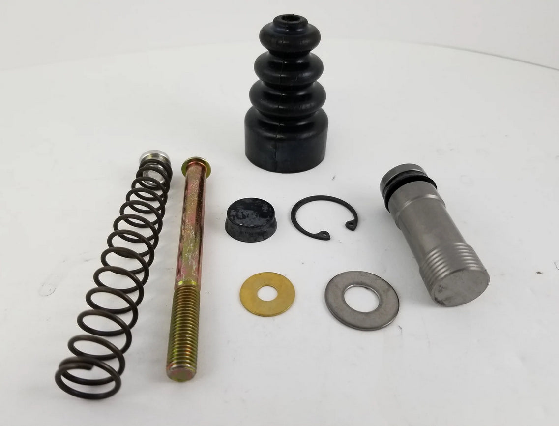 Jamar 11/16 inch master cylinder rebuild kit. Fits JMC5000 and JMC3000 master cylinders with an 11/16 inch bore size. Includes piston and seal, cup seal, push rod, spring, spacer, boot, washers and retainer circlip.