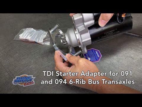 Our TDI Starter adapter is a CNC machined billet aluminum adapter that includes all necessary mounting hardware and instructions. This kit includes a 96-06 Jetta Manual trans TDI starter and fits onto VW 6-rib 091 or 094 style transaxle bellhousing for dune buggies with hi compression or more powerful engines.