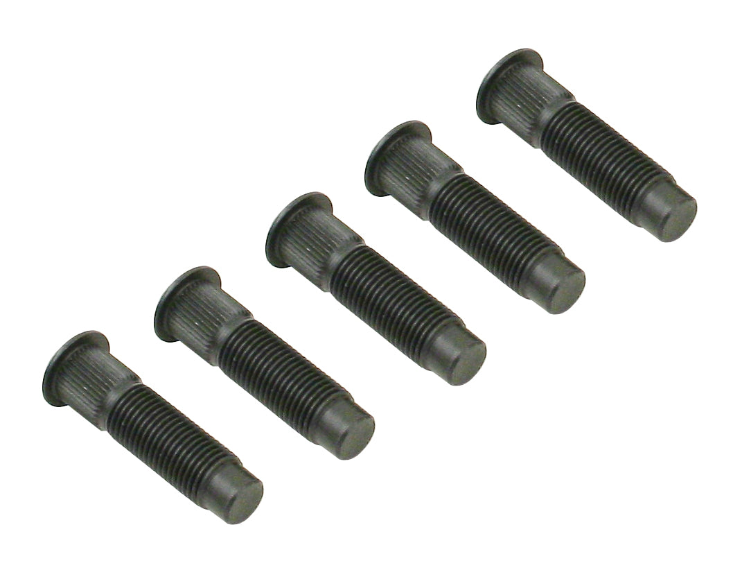 Empi 70-2810-0 press-in wheel studs are threaded for 14mm-1.5 lugs and measure 2.20 inches long. These Porsche style studs require a 9/16 inch hole for proper press fit, and may require reaming to 37/64 inch for some drum or hub materials.